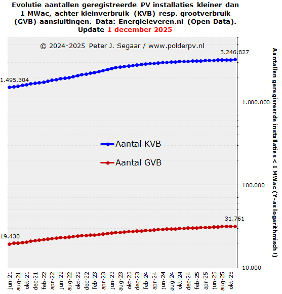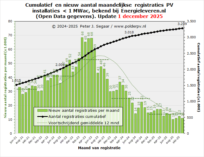 eind juni 2021, naar alweer bijna 3,25 miljoen stuks, begin december 2025,