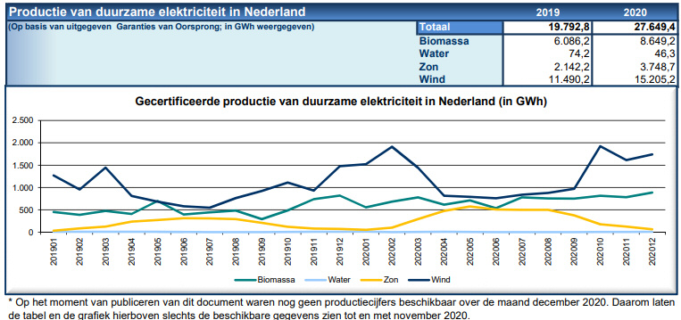 Er werd een sterk toegenomen hoeveelheid certificaten geïmporteerd, een toename van 40 GWh in 2018, via 2.483 GWh in 2019, naar maar liefst 9.654 GWh in 2020. Vermoedelijk om alle leveringscontracten "dichtgetimmerd" (gecertificeerd) te krijgen.