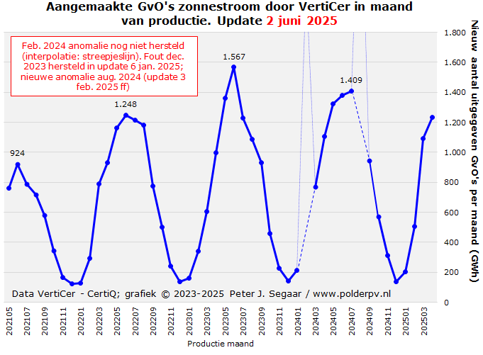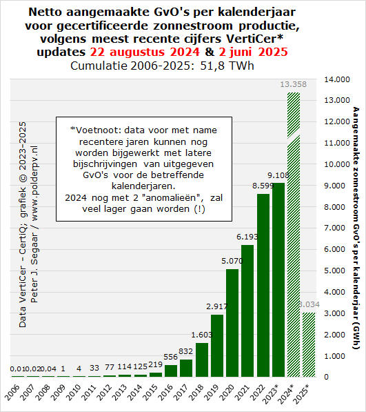 Het overzicht met de eerste, resp. gewijzigde cijfers voor mei 2025 verscheen in de nieuwe, drastisch gewijzigde vorm op de website van VertiCer, op 2 juni 2025. Pas na de vakantie van Polder PV konden deze in detail worden verwerkt in de huidige rapportage. Referenties naar eerder verschenen historische data zijn uiteraard impliciet als CertiQ gegevens geanalyseerd, in oudere analyses.